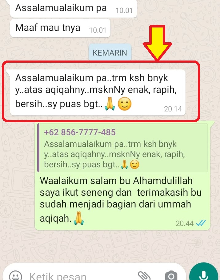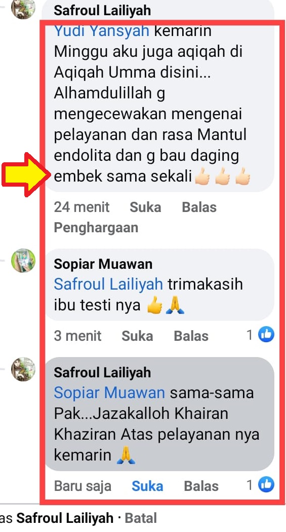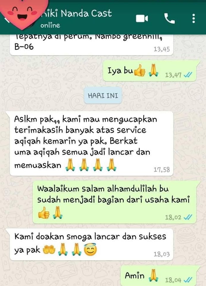 Mulai dari pelayanan cepat, bebas amis, bisa COD, dokumentasi lengkap, sampai bonus-bonus lucu — semuanya bikin pengalaman aqiqah jadi berkesan banget.